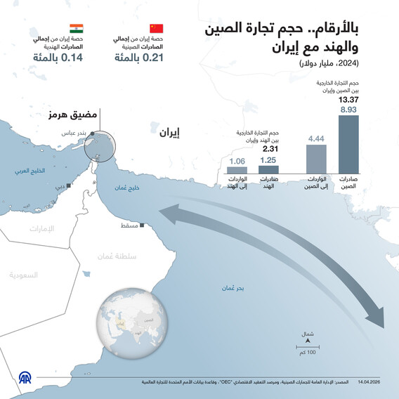 بالأرقام.. حجم تجارة الصين والهند مع إيران