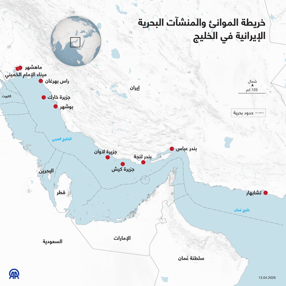 خريطة الموانئ والمنشآت البحرية الإيرانية في الخليج