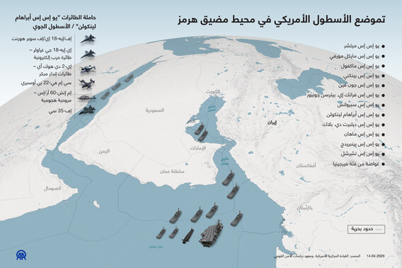 تموضع الأسطول الأمريكي في محيط مضيق هرمز
