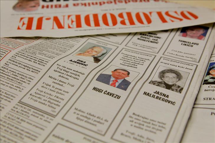Bosanskohercegovački poštovaoci lika i djela preminulog predsjednika Venecuele Huga Chaveza objavili su u rubrici ''Sjećanja i smrtovnice'' u današnjem broju sarajevskog ''Oslobođenja'' posljednji pozdrav južnoameričkom lideru koji će danas biti sahranjen u glavnom gradnju te zemlje Caracasu, izvještava novinar agencije Anadolija (AA).