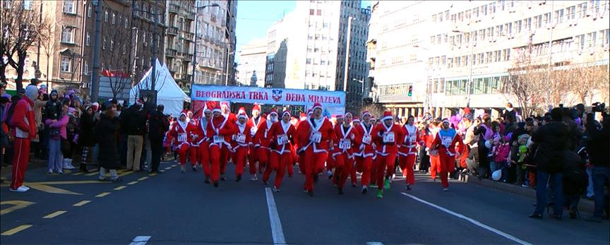 U srbijanskoj prijestolnici danas je održana Peta beogradska trka Deda Mrazeva, u okviru koje je više od hiljadu takmičara odjevenih u crveno i bijelo trčalo ulicama glavnog grada Srbije, javio je dopisnik agencije Anadolija.
