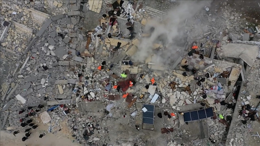 Desetine zgrada su uništene ili oštećene u područjima pod kontrolom opozicije na sjeveru Sirije, gdje spasilačke ekipe tragaju za preživjelima.
