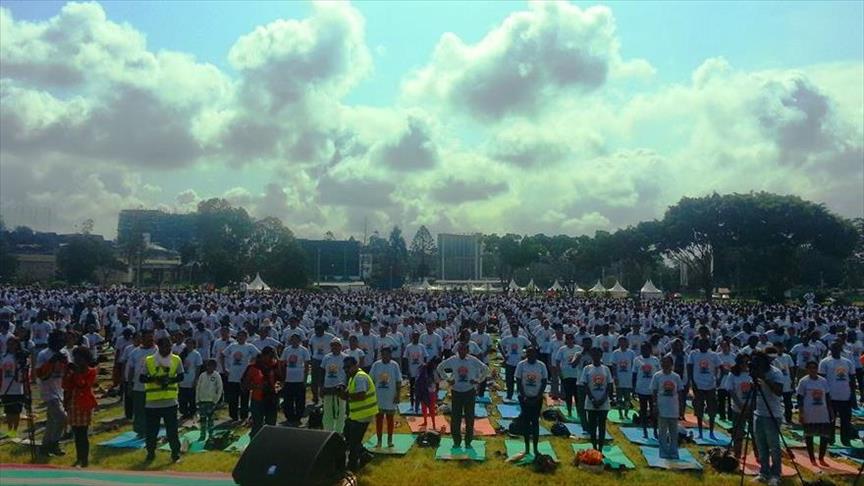 Stretching and downward-dogging in endless rows, over 7,000 Kenyans on Sunday took a break from protests with yoga ahead of June 21, International Yoga Day.