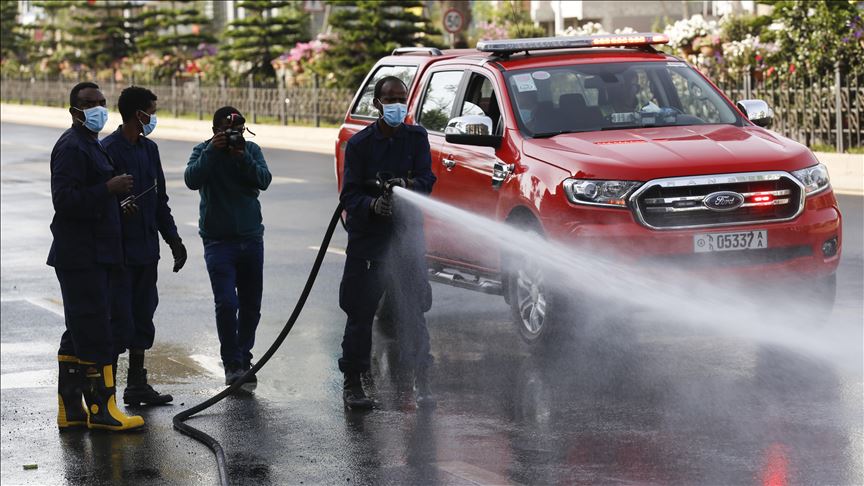 Ethiopian fire brigades on Sunday cleaned and disinfected public spaces in the country's capital, Addis Ababa to slow the spread of the novel coronavirus.