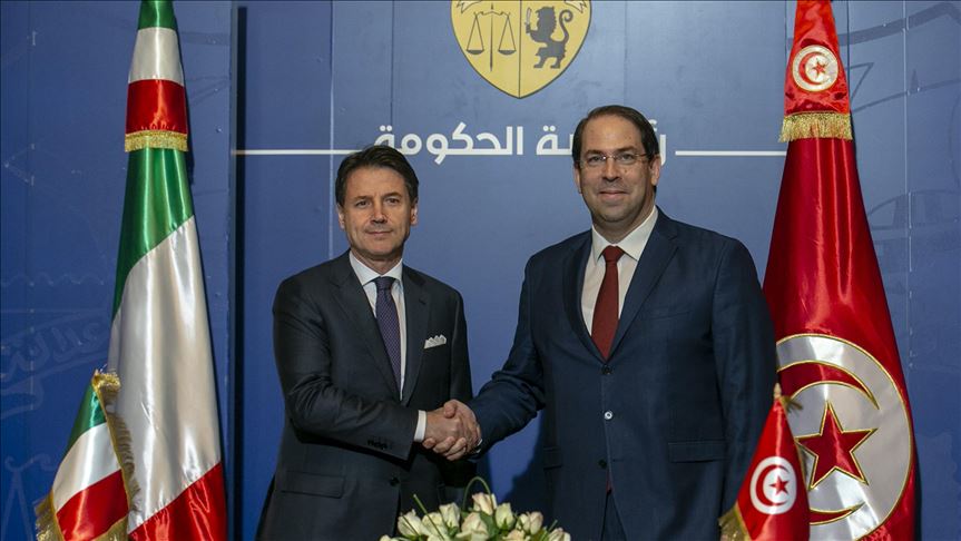 Italian leader Giuseppe Conte arrived in Tunisia earlier in the day and affirmed the need to give a political settlement a chance, stressing “there is no room for a military solution -- a political process is needed in Libya."