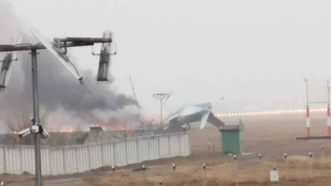 Footage on social media shows the small plane colliding with the bomber, causing it to split in two and crash.