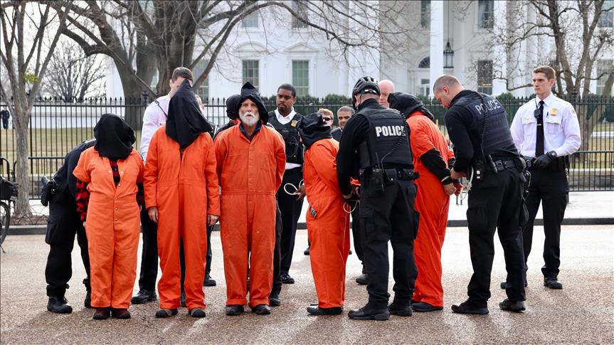 Human rights activists demonstrated in front of the White House on Thursday, demanding the closure of the detention center at the U.S. Naval Base in Guantanamo Bay, Cuba on its 16th anniversary.