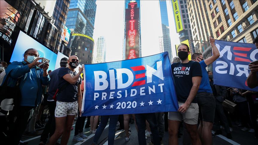 NEW YORK, USA - NOVEMBER 07: New York City erupts in celebration of Biden’s win as 46th U.S President at the Times Square in New York, United States on November 07, 2020. ( Tayfun Coşkun - Anadolu Agency )