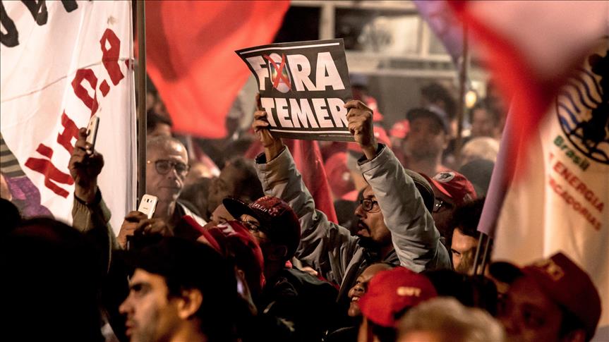 Protests carried signs that read, “Temer, state coup” and “Out Temer” as they chanted slogans against the new government.