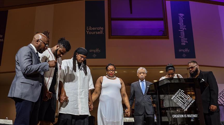 During Monday's event at the Baptist Church, a video presentation showed celebrities describing 23 everyday things black people might do that triggered actual deadly encounters with police, such as "wearing a hoodie" in the case of Trayvon Martin and "making eye contact" in that of Freddie Gray.