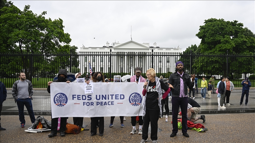 The protestors, including current and former federal government employees, said the US is "very directly complicit in part” because it “continues to provide absolutely unconditional support.”