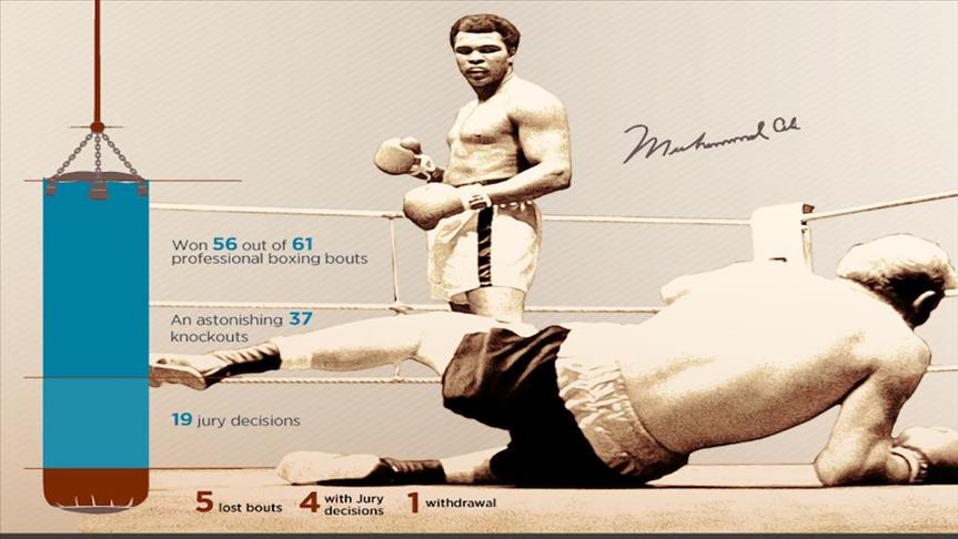 As a professional, Olympic gold medalist Ali won 56 out of 61 boxing bouts, including an astonishing 37 knockouts.