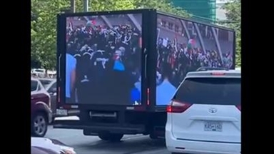 A video posted on social media shows a cube van playing a video that questions “Is this Yemen? Is this Syria? Is this Iraq?” It then displays Muslims at prayer accompanied by a text that says: “Wake up Canada. You are under siege.”