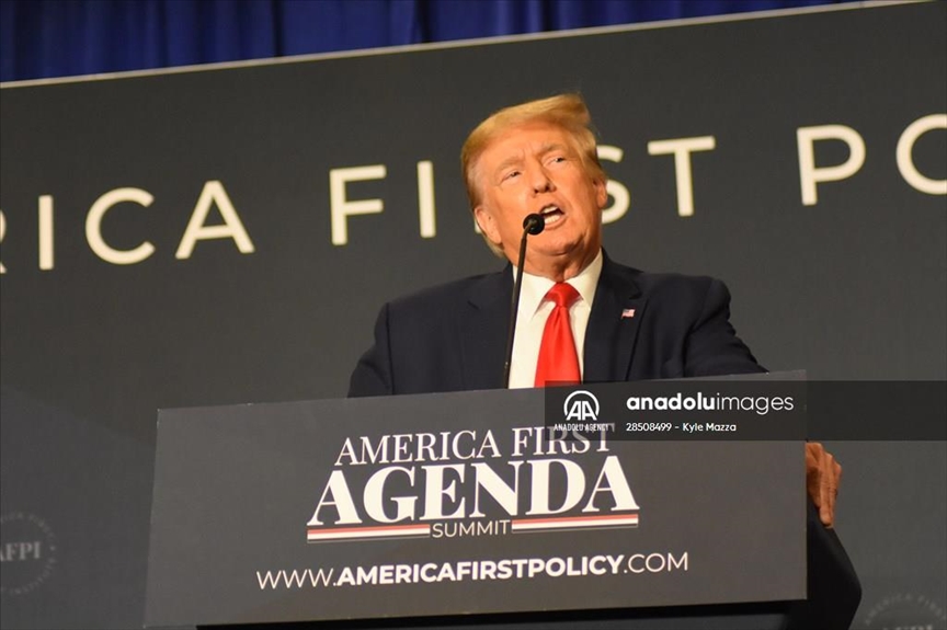 Donald Trump championed the job he did as head of state and criticized current President Joe Biden and Democratic lawmakers during a speech Tuesday at the America First Agenda Summit in Washington, D.C.