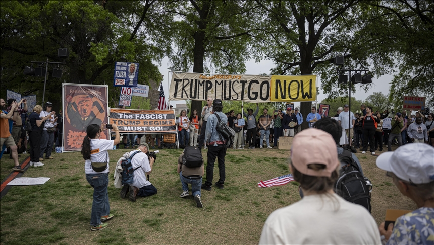 Protesters carried banners that read, "Hands off DC!" "No fascist takeover of DC" and "DC says freedom not fascism," according to the media outlet.