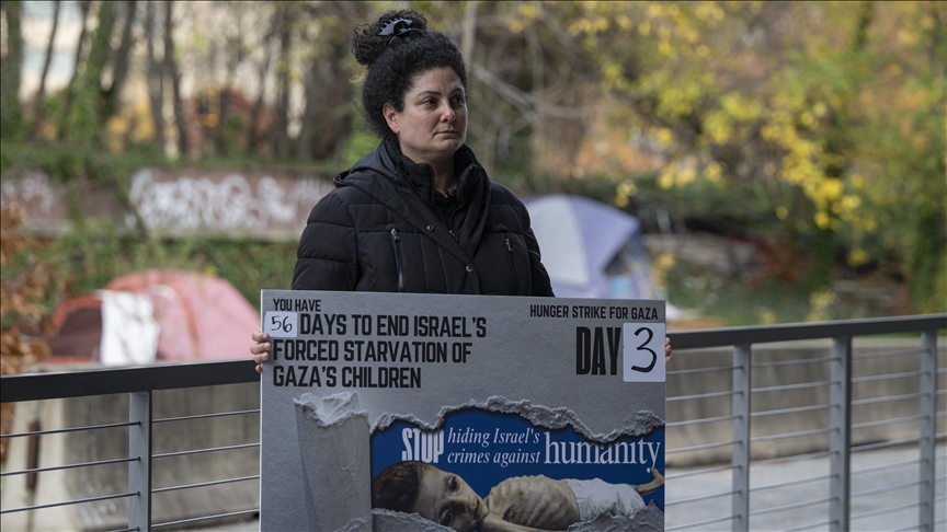 American activist Hazami Barmada entered the third day of her hunger strike near the US State Department and the White House on Wednesday, calling for an immediate end to Israel's starvation of Palestinians in Gaza.