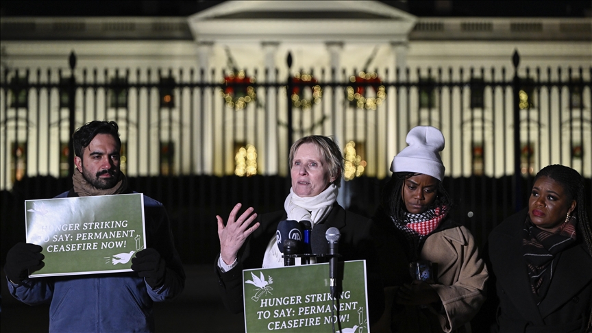A group of US Congress members visited activists, state legislators, and actors on Wednesday on day three of a five-day hunger strike they launched in front of the White House demanding a permanent cease-fire in Gaza.