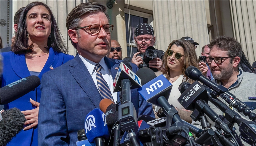 US House Speaker Mike Johnson faced boos and loud chants from protesting students as he delivered a speech during his visit to Columbia University on Wednesday.