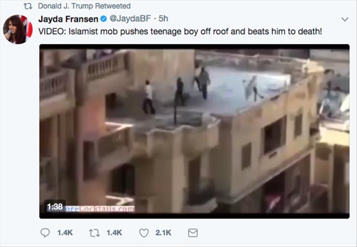 The three videos were previously tweeted by Britain First deputy leader Jayda Fransen, who was convicted by a U.K. court in November 2016 of religiously aggravated harassment.