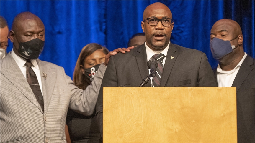 MINNESOTA, USA - MARCH 12: Attorney Benjamin Crump, the attorney for the family of George Floyd speaks to the press after the Minneapolis City Council approve a 27 million dollar settlement with the Floyd family, in Minneapolis, Minnesota, United States on March 12, 2021. ( Christopher Mark Juhn - Anadolu Agency )