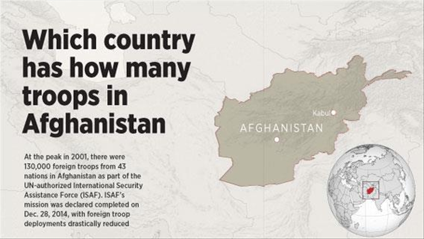Currently, under the NATO-led Resolute Support Mission, there are a total of 9,592 troops from 36 nations stationed in the war-ravaged country, with the US topping the list with 2,500 soldiers.