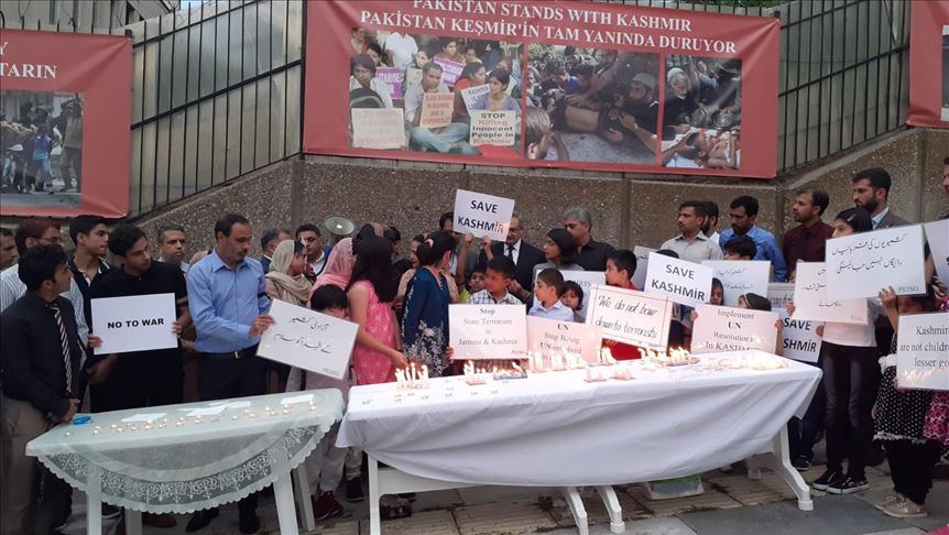 Scores of Pakistanis living in Turkey converged at Pakistan's Embassy in Ankara Thursday evening for a candlelight vigil expressing their solidarity with the people of India-administered Jammu and Kashmir.