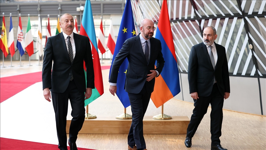 EU Council President Charles Michel, Azerbaijani President Ilham Aliyev, and Armenian Prime Minister Nikol Pashinyan held a trilateral meeting on Saturday in Brussels.