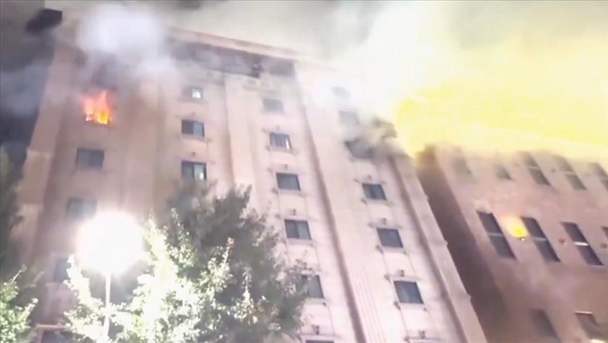 Video footage showed that a man and a woman died after jumping out the windows on the hotel's eighth floor onto the air mattress installed by firefighters on the ground. The mattress was seen flipping after the woman landed on the edge of it, and as the man jumped four to five seconds later, he missed the mattress and hit the ground.