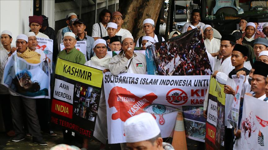 A group of protestors on Wednesday held a demonstration in front of India's embassy in the Indonesian capital of Jakarta, marking the Kashmir Solidarity Day falling on Feb. 5