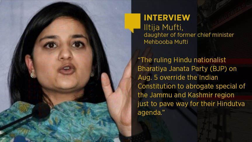 In an exclusive interview with Anadolu Agency, Iltija Mufti said the Kahmir decision was taken by Prime Minister Narendra Modi-led government just to pave way for their Hindutva agenda.