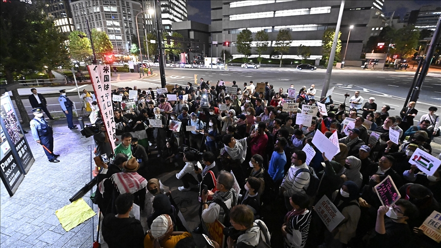 Protesters gathered in front of Japan's Aichi Prefecture government office, demanding the cancellation of a business partnership with an Israeli startup, saying the partnership is "an act of supporting genocide" in the Gaza Strip.