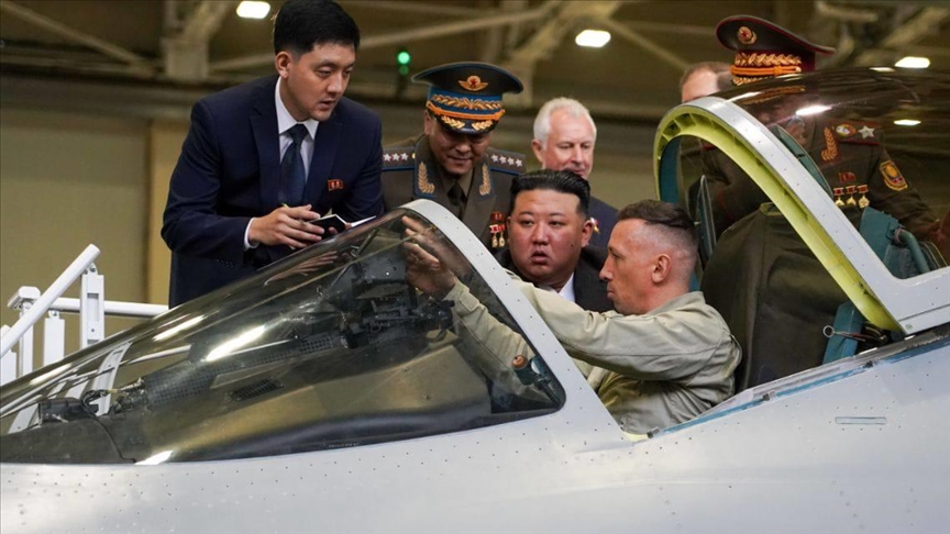 Kim met test pilots aboard a Su-57 fifth-generation fighter jet and watched a test flight, it said.