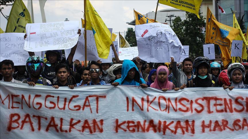 A demonstration coordinator told Anadolu Agency that they were protesting against the increased prices of some basic necessities -- including chili products that are a key ingredient of Indonesian cuisine, electricity, fuel and public services at the police station -- in early 2017.