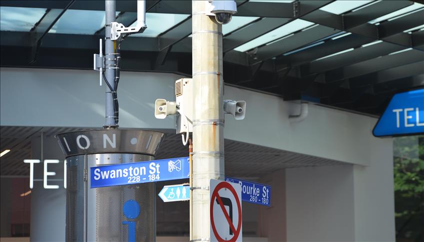 As part of the measures, 65 sets of speakers and 31 security cameras were installed at touristic city sites, including Federation Square and Flinders Street.