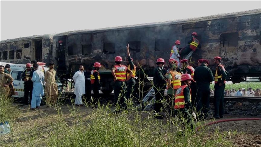 The fire started when a gas cylinder exploded in a carriage of a train carrying members of Tablighi Jamat -- a non-political global Islamic missionary movement -- near the Rahimyar Khan district in the Punjab province, city police chief Amir Taimoor Khan told reporters.