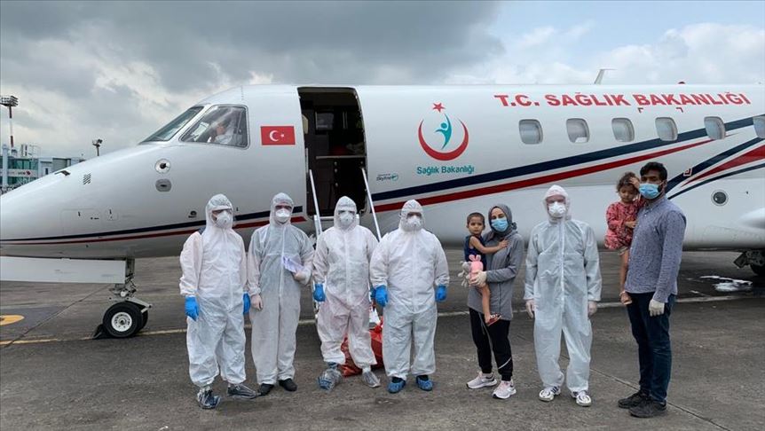 The air ambulance was arranged by Turkey's Health Ministry after receiving a document that shows the conditions of the family members.