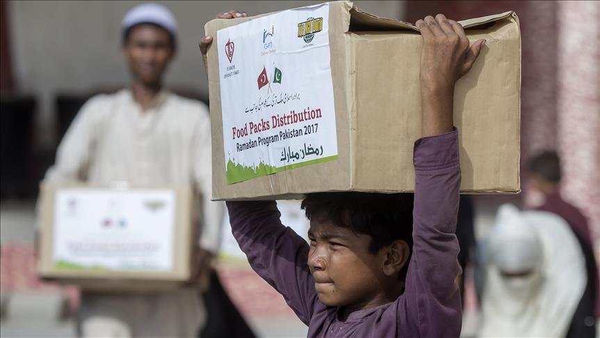 The aid group, connected to Turkey's state Religious Affairs Directorate, plans to distribute 1,500 food packages to underprivileged families in various cities in the coming week, including Karachi, Islamabad and Multan.