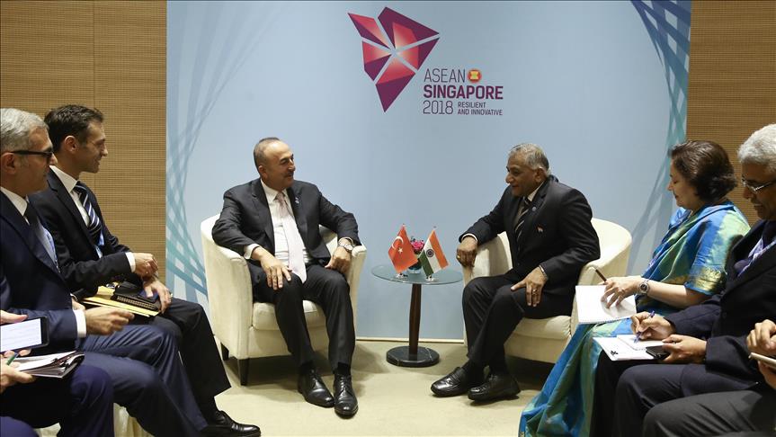 Foreign Minister Mevlut Cavusoglu met Indian Minister for External Affairs Vijay Kumar Singh in Singapore on Friday.