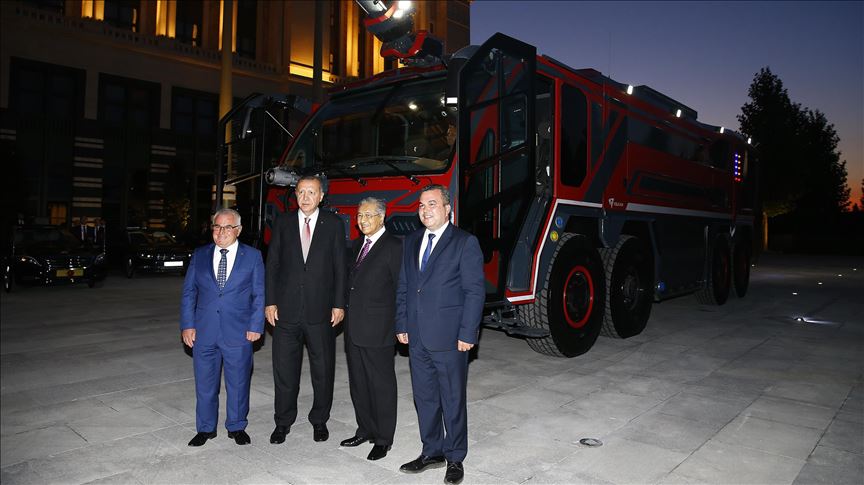 Turkish President Recep Tayyip Erdogan and Malaysian Prime Minister Mahathir bin Mohamad on Thursday inspected Turkey’s locally-built fire truck.