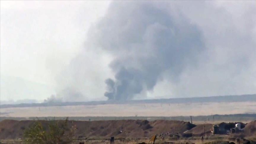 Footage from the region under Azerbaijan's control shows smoke rising from positions of Armenian troops.
