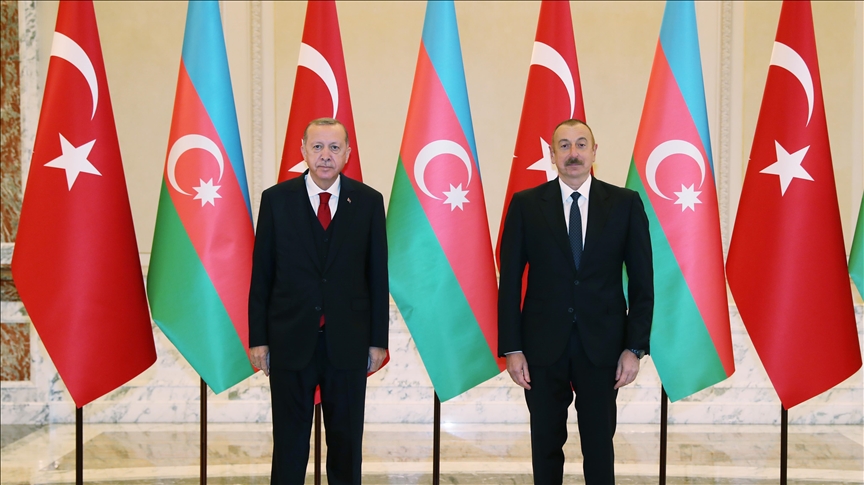 The president of Azerbaijan received his Turkish counterpart with an official ceremony in the capital Baku on Thursday.
