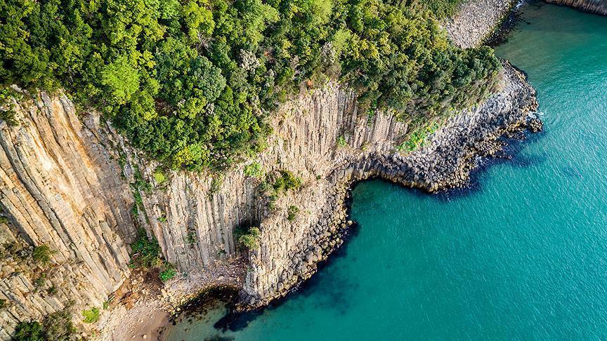 In Bartin's Guzelcehisar beach on the Black Sea coast, the columns were formed when lava flowed from volcanos and as it cooled, providing a stunning landscape with geometric columns.