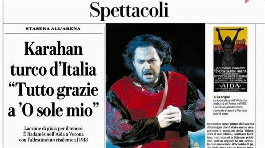 Karahan will perform Il Travatore, Carmen, Tosca and Aida at the Verona Opera Festival which kicked off on June 21 and will run through Sep. 7.
