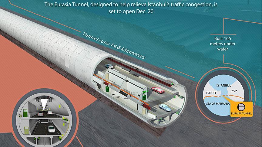 According to officials, the Eurasia Tunnel is expected provide a solution to Istanbul's traffic problems by decreasing travel times on the route from around 100 minutes to 15 minutes.