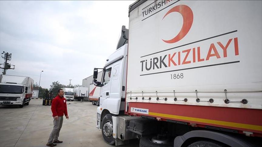 The Turkish Red Crescent on Friday sent two aid trucks to Syria via a newly-opened border crossing.