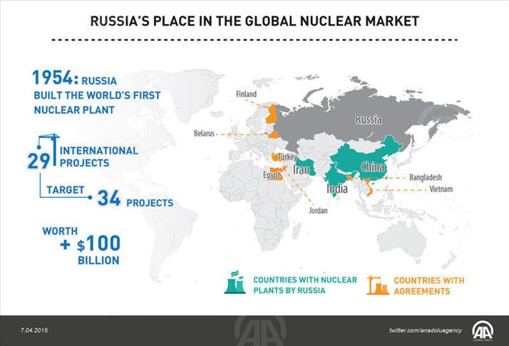 Rosatom, Russia's state-owned nuclear company, has 29 nuclear projects around the world and aims to increase the number to 34 through agreements currently being negotiated. The latest deal was struck with Jordan to build its first nuclear plant, worth $10 billion, on March 24.