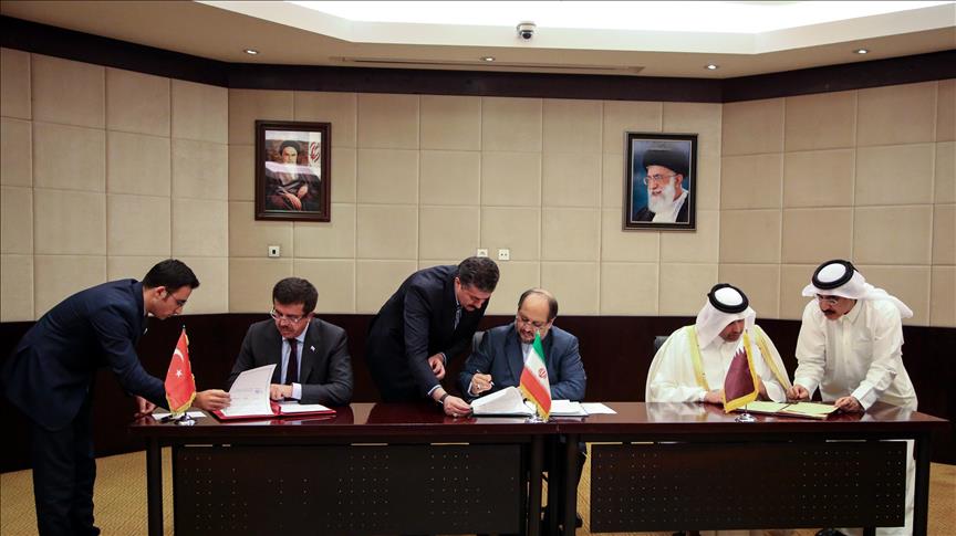 Turkey's Economy Minister Nihat Zeybekci, his Iranian counterpart Mohammad Shariatmadari, and Qatari counterpart Ahmed bin Jassim bin Mohammed Al Thani were in the Iranian capital Tehran to sign the agreement.
