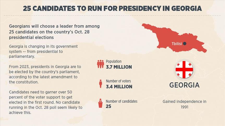 Georgians will choose a leader from among 25 candidates on the country’s Oct. 28 presidential elections.