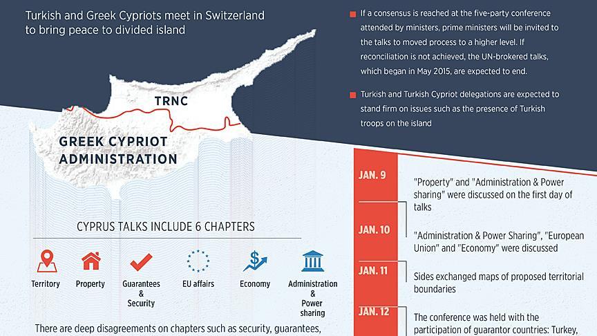 The international conference in Mont Pelerin, Switzerland, attended by experts and technical delegations from Turkish and Greek Cyprus as well as guarantor countries Turkey, Greece, and Britain, is tackling issues such as security and guarantees to bring peace to the Mediterranean island.