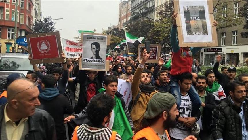 Hundreds of people rallied in the German capital Saturday to call for an end to the Syrian regime’s continuing airstrikes on Aleppo, which has killed at least 500 people in the past two weeks.